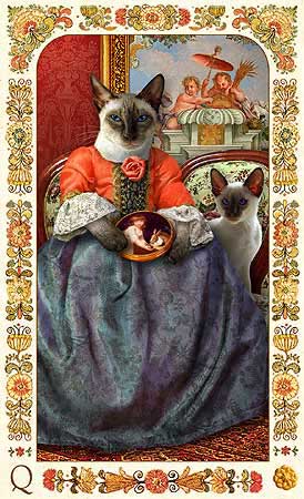 The copyright of image of The Baroque Bohemian Cats' Tarot is property of Baba Studio.Reproduction,even partical of any images is ruled by international laws and copyright. Illustrations from the decks reproduced by permission of the arthors.