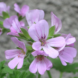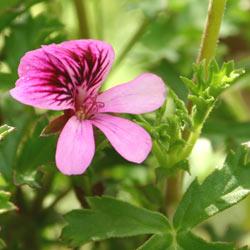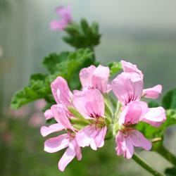 アターオブローゼズ・ゼラニウム(アッタルローズ)の3裂する葉はバラの香りがして、ケーキなどにバラの香りをつけるのに使われるよう。