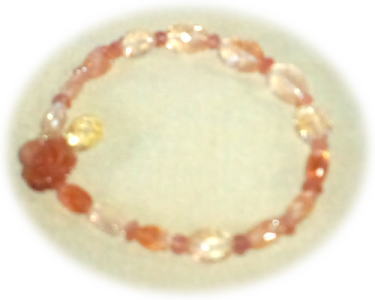 届いたのはこれ。ゴールド系のカラーの太めのテグスを買ってきてみたけれど、単独でブレスレッドにするにはいささか短かったので、こないだのボタン型サンストーンを間にいれ、うちに眠っていたオレンジカーネリアンの薔薇とインペリアルトパーズの14kFilledのチャームで固定。