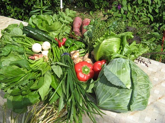 シャクシ菜・葉付き人参、冬瓜、トマト、茄子、大根・・さつまいも、