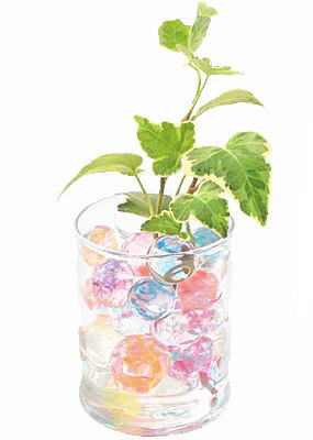トップページの絵を描いた茉莉花さんのブログに水で膨らむビーズというのがあったのですが、ネットでは売り切れのところが多く・・、でも茉莉花さんの幻想的な世界のようにきらきらして見えたので私も花を生けるのに探してみました。