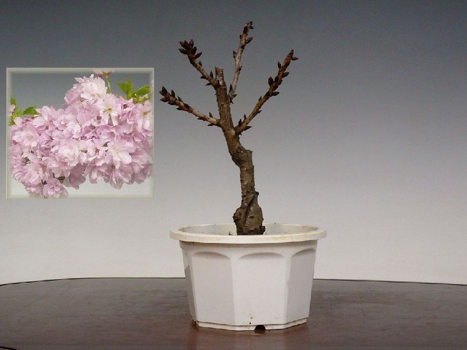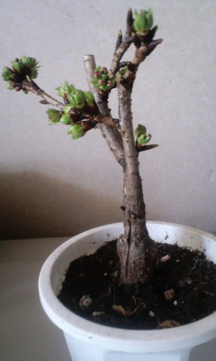 去年買った桜盆栽の蕾が緑に。