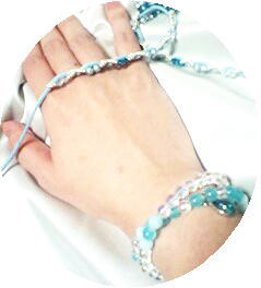 はじめ余ったビーズで作ったブレス。しずく型のはアクアオーラ。